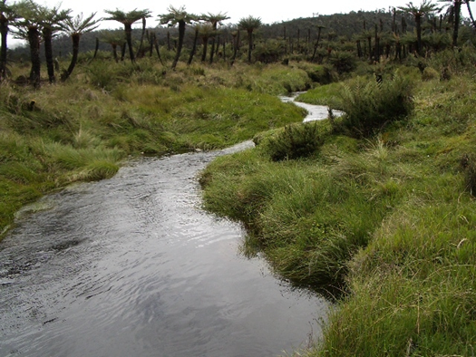 Central Papua, Timika — Amid the long and demanding journey toward Carstensz Pyramid, nature often presents moments of quiet beauty capable of halting a hiker’s steps. One such moment appears unexpectedly along the trail: a small stream flowing gently, its dark brown water resembling strong coffee blending seamlessly with the mountain soil.